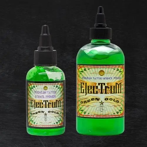 ELECTRUM Premium Tattoo Stencil Primer es el producto de aplicación de plantillas líder en la industria. Una afirmación respaldada por comentarios positivos constantes de los clientes y una creciente lealtad a la marca.